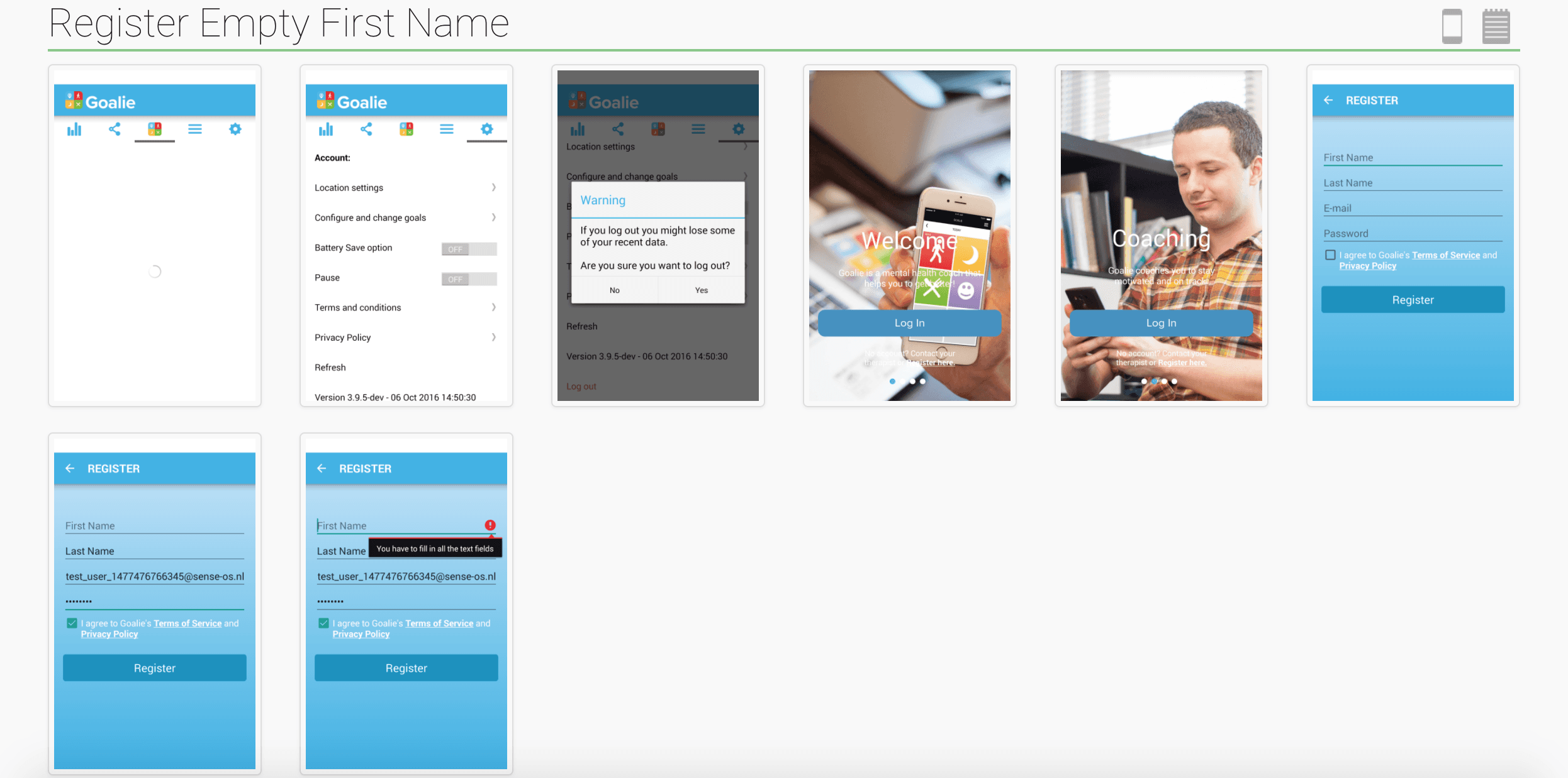 LoginRobot.RegisterUser(activityRule, email, “password”, “”, “Last Name”, true);