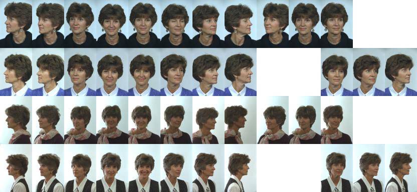 The FERET Database has 1208 different people with multiple pictures for each person variating in yaw, pitch, roll of the head, facial expressions and lighting conditions.